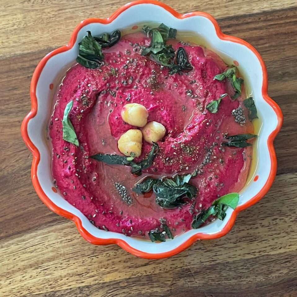 Beetroot and chickpea have an affair in this luscious, full of healthy fats, pink hummus.
