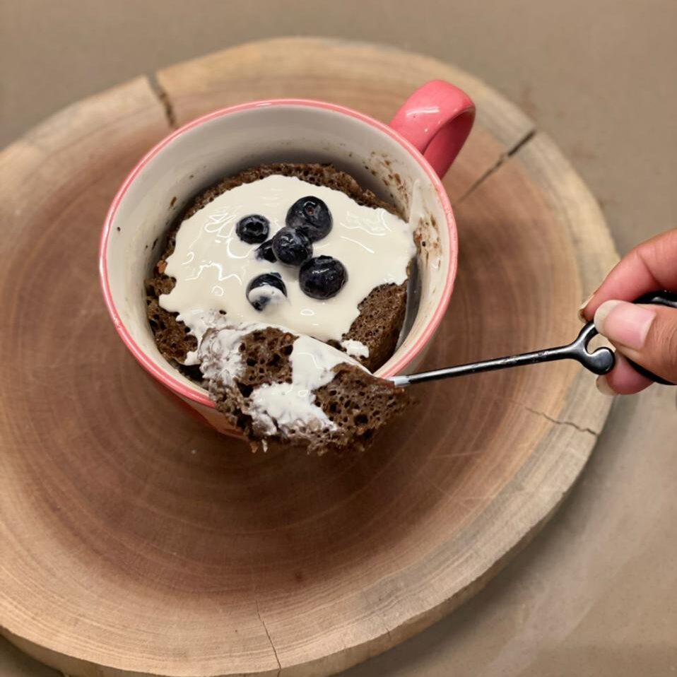 Keto mug cake with dense alkaline chocolate that’s easy ingredients & quick to make!