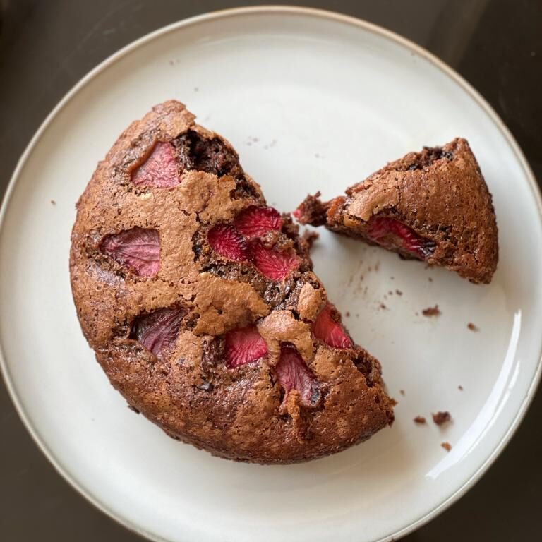 Lazy sunday strawberry chocolate cake is all ingredients in a blender & bake kinda’ recipe